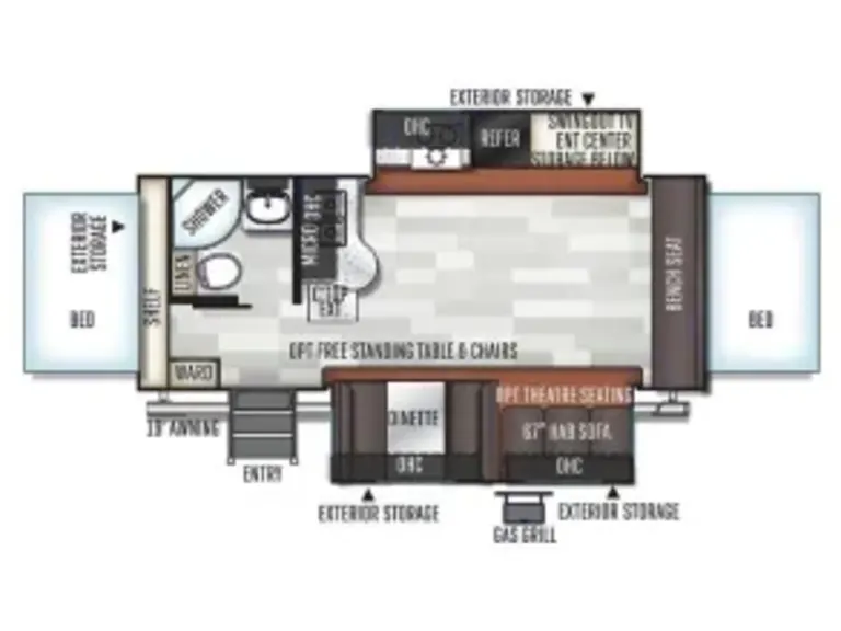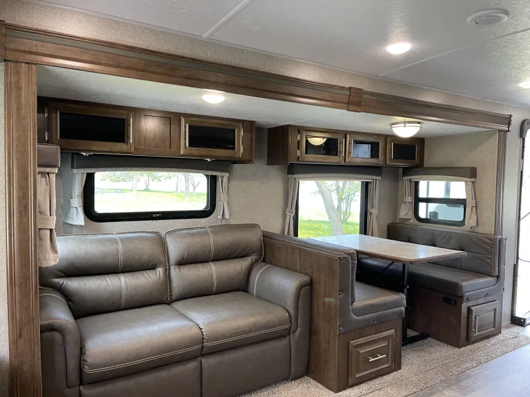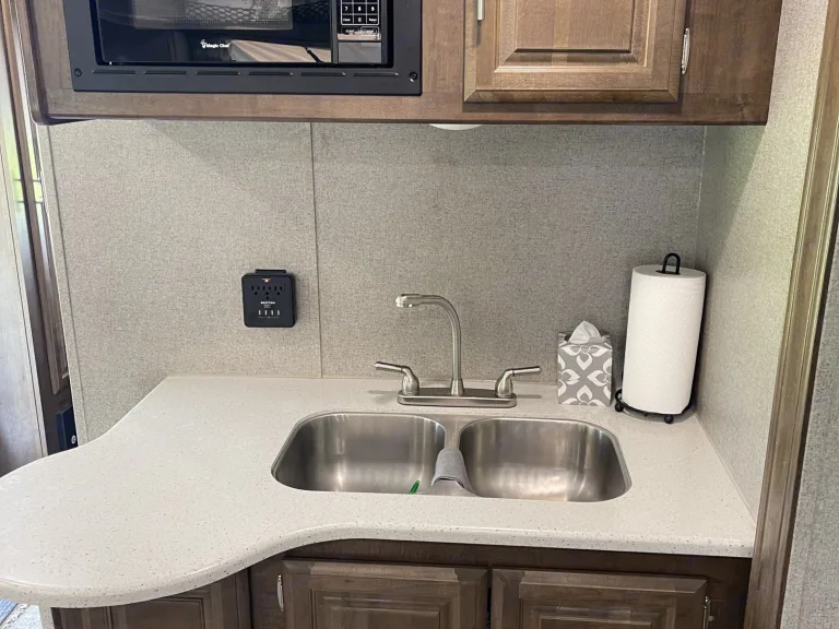 Expandable and very flexible RV Rental: You'll be amazed with how open and spacious this 8 person RV is... includes 2 heated beds, sofa sleeper, dinette & large screen tv, wifi, etc... Very clean and comes with many items stocked.Optional delivery available upon request. The 2 standard queen beds fold down on the ends (very easy setup), includes heated mattresses. The sofa sleeper comfortably sleeps 2 adults and the dinette will sleep 2-smaller persons (kids/teenagers). Camp chef w/propane (optional). Sway hitch (optional).