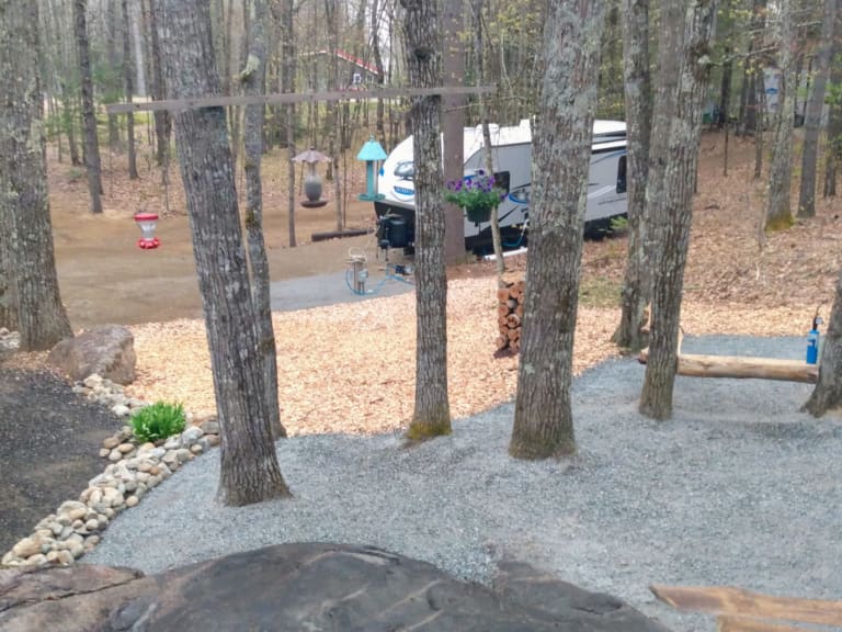 This 5th wheel is already located on a small campground on a wooded lot in South Central Maine. The site has full hookup and is on an artesian well for water. With the beauty of this location my intent would be to only rent to folks who want the camper experience without the need to move it somewhere with a large truck. Included in the price is the cost of the campsite. This camper is in a great location to explore coastal Maine without the high costs. Contact me for more information or visit me on facebook at Ledges at Leeds Ce qui est inclusThe camper will have linens and kitchen accessories. RecommandationsThis 5th wheel is already located at a great spot so our intent is for you to leave it there and enjoy the peace and quiet the Ledges at Leeds provides. Autres points à signalerThe Ledges campsites are dedicated to a peaceful and quiet experience. We occasionally have events at our Amphitheater but will make clean when those are to avoid schedule conflicts. You can see more at leedsledges.com