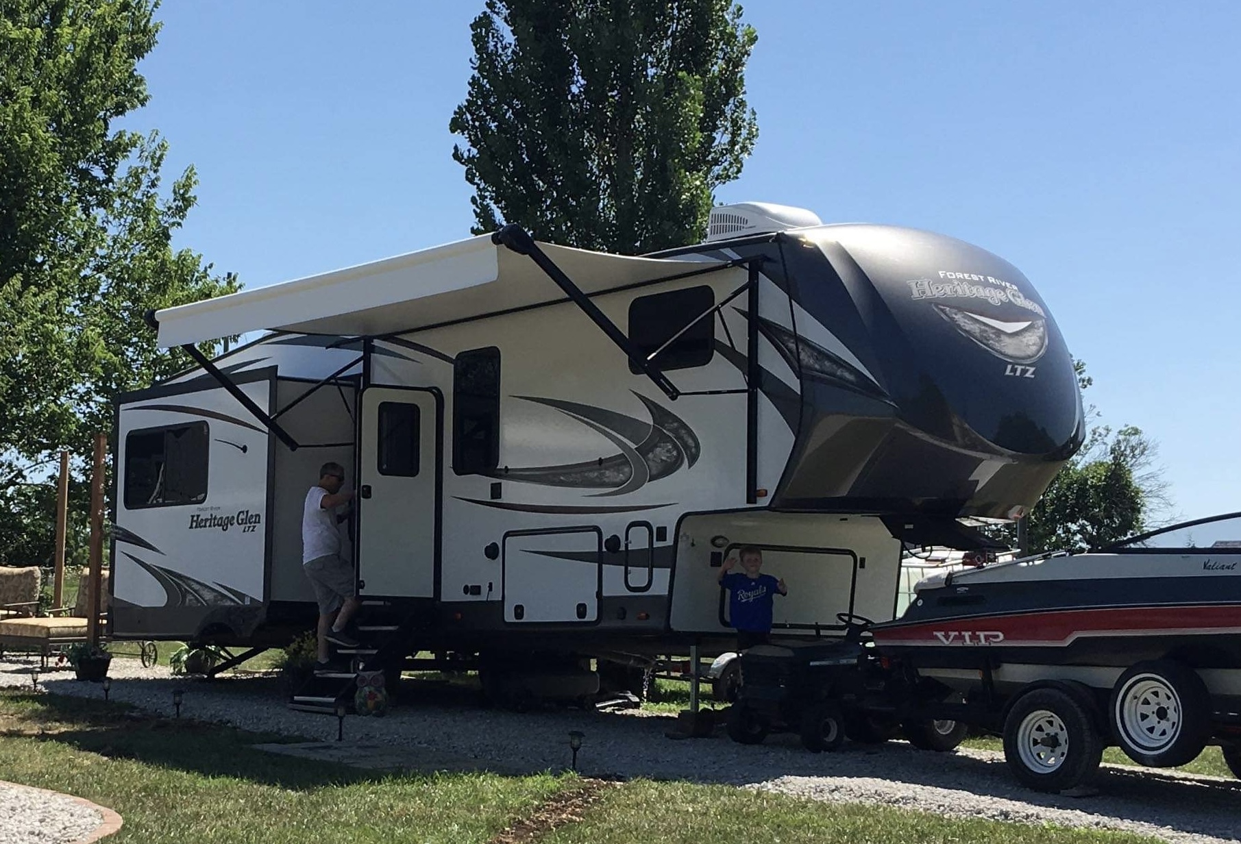 - Outdoor living includes camping chairs, electric grill, outdoor gamesCe qui est inclusLinens, towels, beach towels, dishes, cookware, silverware and cooking utensils, camping chairs RecommandationsLinn Valley Lakes is a great fun getaway with lots to do! Can deliver and set it up at the campground for you!