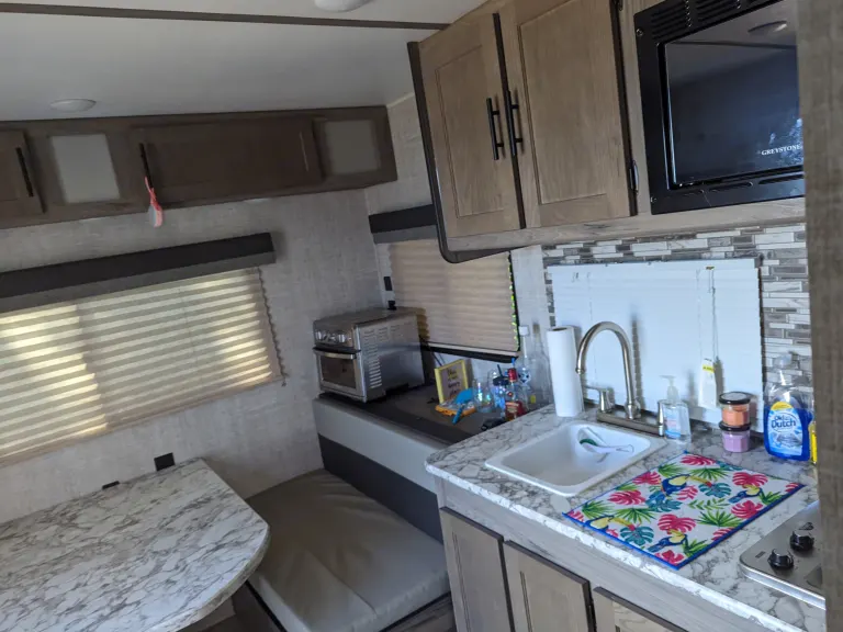Ce qui est inclusFresh Linens: Clean and comfortable bedding will be provided for the queen-size bed and bunk beds. Rest assured, you can enjoy a restful night's sleep.Kitchen Essentials: Our trailer comes fully equipped with essential kitchenware, including pots, pans, utensils, and dishes. You'll have everything you need to prepare and enjoy meals during your trip.Appliances: The kitchen features a refrigerator, stove, and microwave, allowing you to store and cook food with ease.Outdoor Seating: To enhance your outdoor experience, we provide camping chairs for you to relax and soak in the natural surroundings.Entertainment Center: Enjoy your favorite shows or movies on the TV provided in the trailer. The stereo system adds to the ambiance, letting you enjoy music throughout your trip.Air Conditioning and Heating: Our trailer is equipped with air conditioning to keep you cool during hot summer days and heating for colder evenings, ensuring a comfortable environment no matter the weather.Bathroom Facilities: The trailer includes a bathroom with a shower and toilet, providing the convenience of having your own private facilities on your outdoor adventures. We will provide you with basic toiletries. (TP, Shampoo, Conditioner, Body wash, etc.)Storage Compartments: Ample storage space is available throughout the trailer, allowing you to neatly organize your belongings and keep everything within reach.Please note that specific items or quantities may be subject to availability and can vary slightly. We aim to provide you with a well-equipped and enjoyable experience, ensuring that you have everything you need for a memorable outdoor getaway.RecommandationsPort Burwell! Try and go somewhere waterfront. Waking up in this trailer to the crashing waves is a surreal experience. Autres points à signalerKeep it clean, report any damages and most importantly have fun! I'm pretty new to the camping world and this trailer really helped me get my feet wet; we hope it does the same for you!
