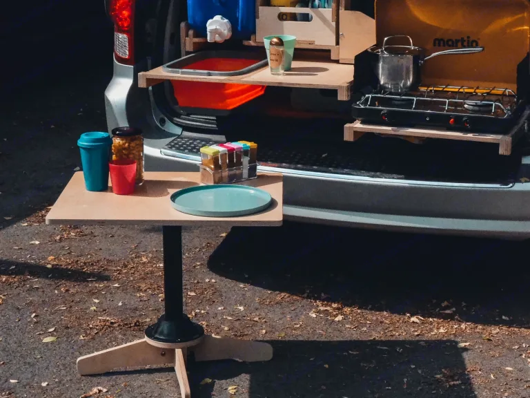 Bonjour ! Je suis une van toute équipée avec un super kit de conversion Vanpackers permettant de passer en mode 4 personnes facilement. En plus, tu auras un espace intérieur en cas de pluie ou de fraîcheur.En voyageant avec moi, tu auras droit à :