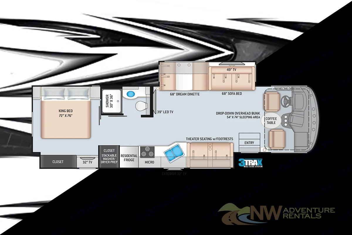 • 40" Main TV with 3 additional TV'• 84" Interior Ceiling Height