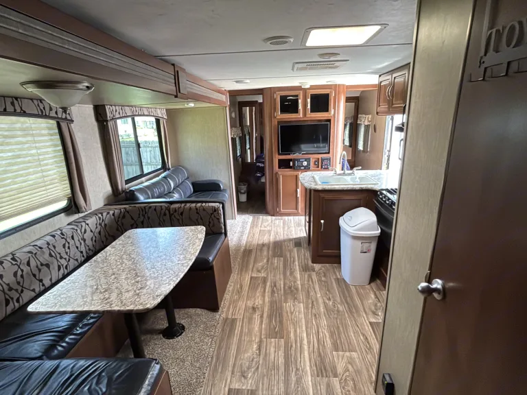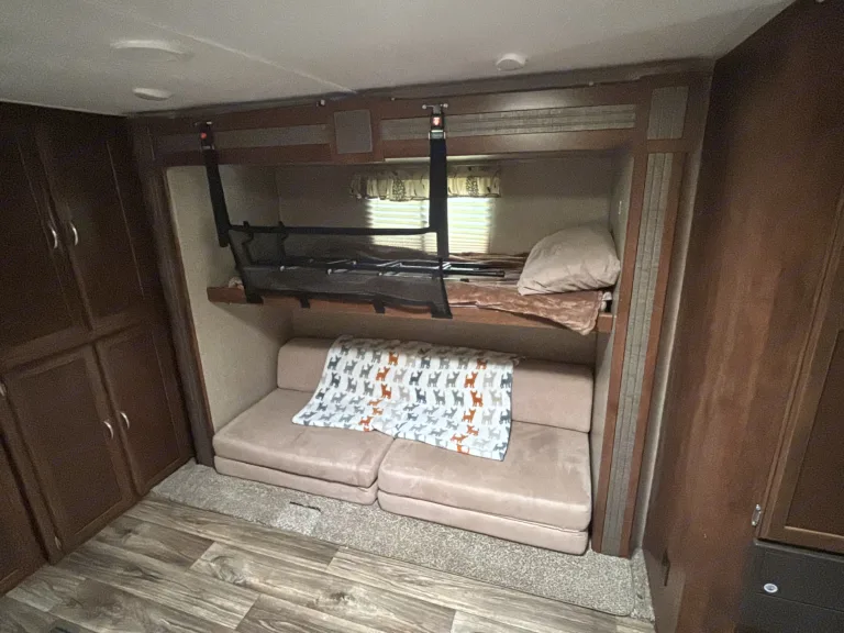 Get ready for unforgettable adventures in this 2017 Keystone Passport bunkhouse camper! Perfect for families or groups, this camper comfortably sleeps 9 with a private master bedroom, cozy bunk beds and additional sleeping space in the main living area. Enjoy al of the comforts of home with a fully equipped kitchen, bathroom with shower, and a spacious living area for relaxing after a day of exploring. The outdoor awning makes it easy to set up the perfect campsite.Autres points à signalerNo smoking inside of the camper, please and thank you!