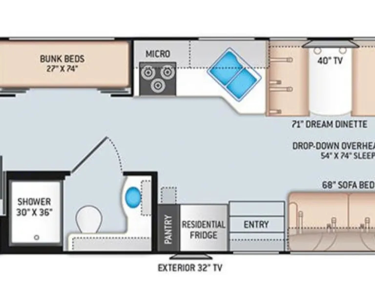 Modern RV with all the amenities you need for an unforgettable camping experience. Fully stocked for a family.