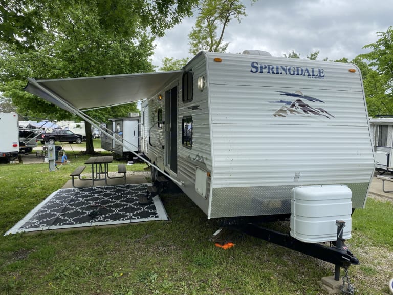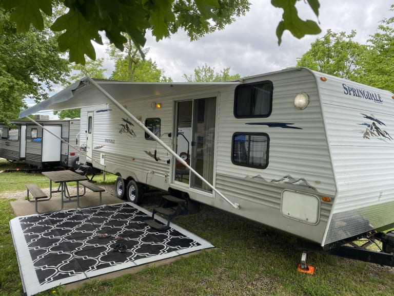 I will not rent the rig to those who want to haul it somewhere, as this is a large camper that requires a full size truck. Looking to stay within 50 miles but will go further for a larger delivery fee. I will bring the camper to your camping location and get the camper setup and ready. I will then pickup the camper once your rental is over.For sleeping arrangements it is equipped with a bunkhouse that includes a queen size bed in the master bedroom, 4 twin size bunkbeds, and a dinette table that can be converted to a bed. This rig is also equipped with a bathroom with shower that is easily accessible.