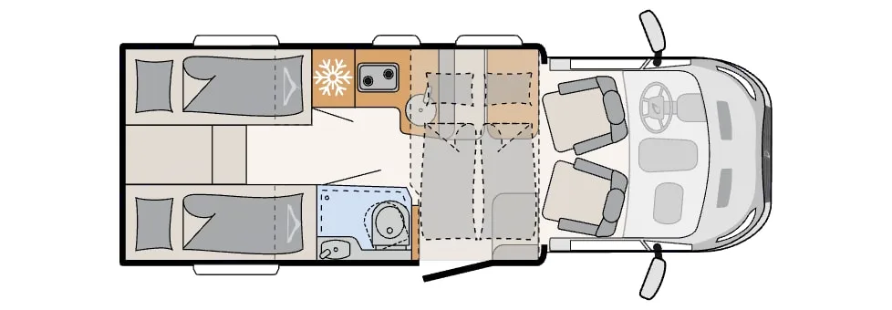 Con la sua configurazione compatta ma generosa, questo semintegrale offre tutto ciò che serve per una vacanza perfetta: letti comodi, cucina attrezzata, bagno completo e un’ampia zona giorno per rilassarsi dopo una giornata di avventure.Perfetto per chi cerca libertà e autonomia