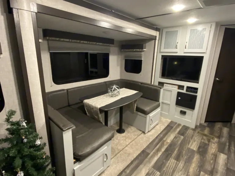 Family and kid friendly travel trailer! Great for families or just couples looking to get away. This RV is modern, and furnished for all your needs. Linens, corn hole, board games, coffee maker and kitchen cooking items included. We also offer renting of camping chairs, propane heater, and will come hook you up and unhook for an extra charge. We are here to make your vacation smooth and enjoyable!Ce qui est inclusFresh Linens, corn hole, games, coffee maker, and all kitchen utensils. Can rent propane heater and camping chairs. RecommandationsWe have camped in California in mountains and by lakes. Tried and true trailer. We are back in Texas and love to take our trailer to national forests, by the water and just small camp sites for some family time away from home!