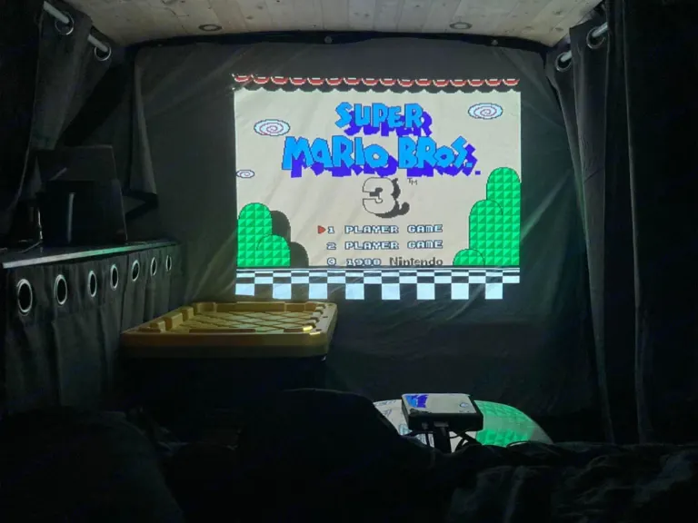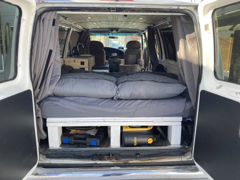 - Movie projector and Nintendo systemThis is perfect for an adventure on the road or in the city. The water reservoirs are easy to remove and empty in any gaz station or rest area. The tinted windows means you can enjoy the outside view without being seen. Park anywhere on the street and enjoy your new home! I did a 3 months USA tour and paid 0$ to sleep.