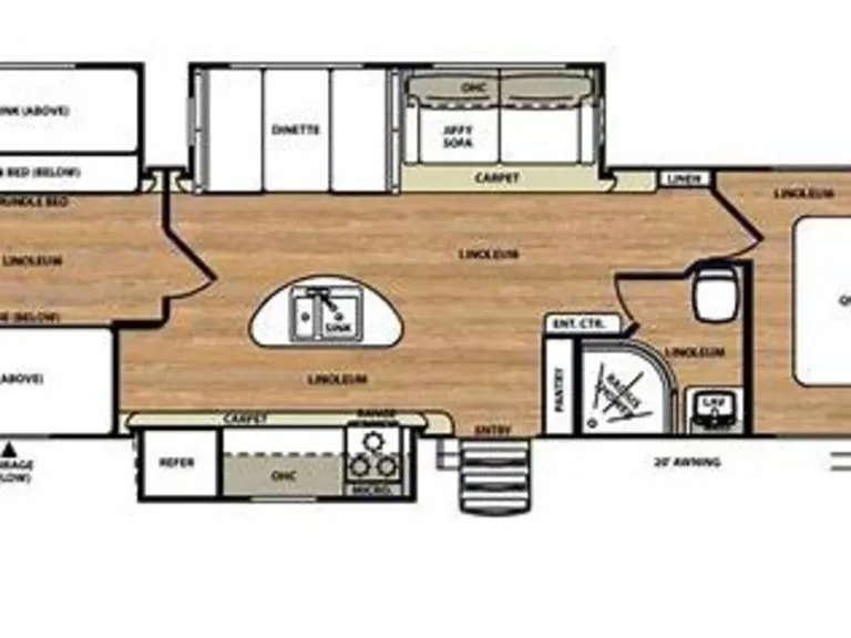 Step inside and be blown away by the spacious and comfortable living area. The RV is stocked with plush seating, a flat-screen TV, and a dining table perfect for dining or playing games with family and friends. The kitchen is fully equipped with all the conveniences of home, including a refrigerator, microwave, stove, and oven.After a long day of exploring, retreat to the master bedroom where a comfortable Queen-Size bed awaits you. The unit also features 2 full size bunks, and conversion dinette providing plenty of sleeping space for up to 6 people.Additional amenities include air conditioning, a full bathroom, and plenty of storage space to ensure a comfortable and stress-free trip. So pack your bags, grab your family and friends, and get ready for the vacation of a lifetime!Renting with us is not only a good choice, it’s a smart one too! We have a full staff dedicated to making sure your get away is flawless – from detailed inspections before rental and managing campers on site, to RV techs on standby for any questions or concerns. We love what we do and we intend to provide the best experience for all! Come see for yourself!