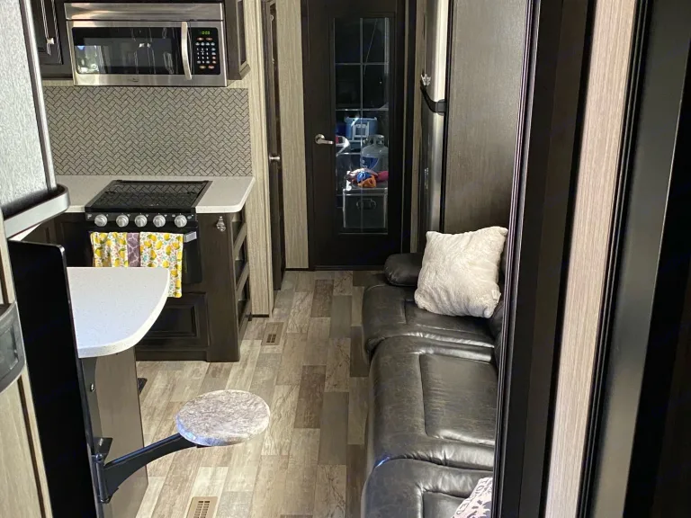 Bring your adventure toys! This spacious 5th wheel features a 13-foot garage.