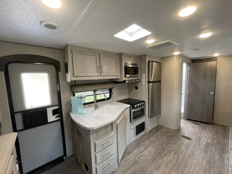 This camper will be set up and delivered to your site only. You get the luxury of just showing up with food and family and enjoying the trip.
