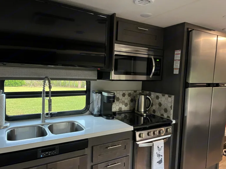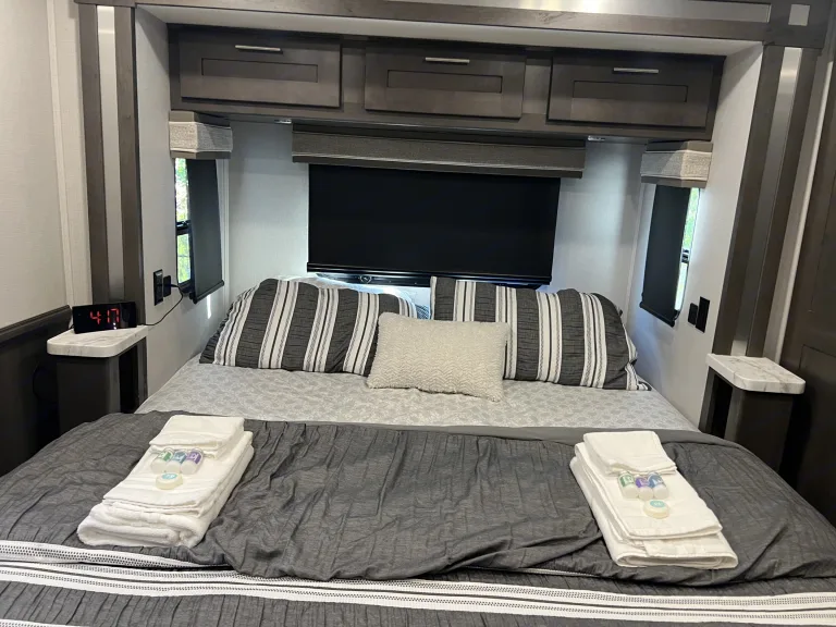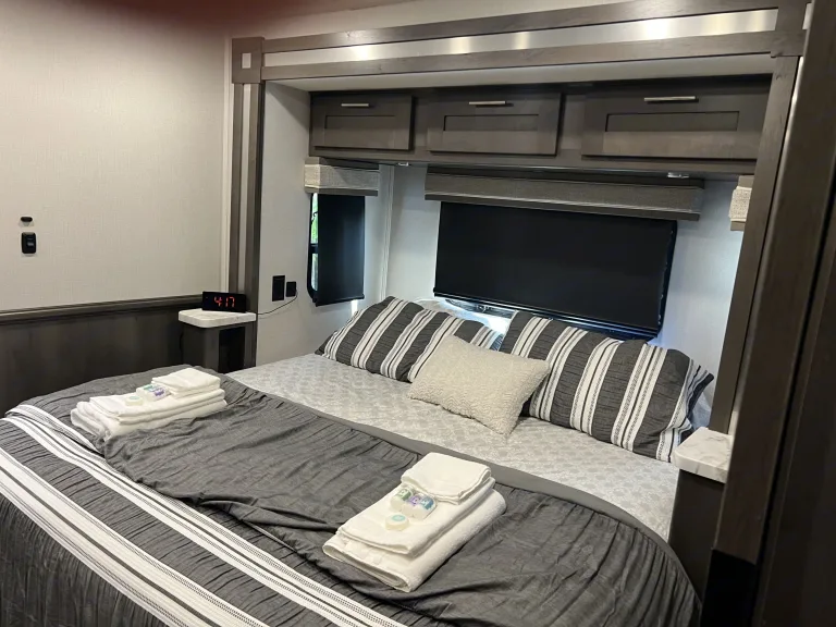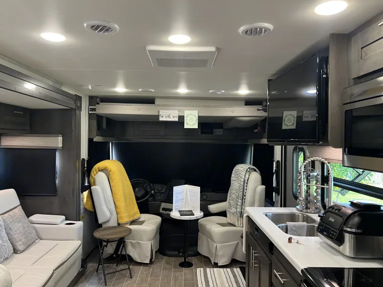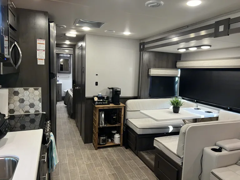 No smoking, vaping, or pets inside the RV. No festivals, tailgating, or off-road use. The driver must be at least 25 years old, hold a valid license, and have received approval from Outdoorsy. Only the registered, approved driver listed on the booking may drive the RV Return the RV clean, with full fuel & empty tanks, or fees may apply. Report any damage or issues immediately. Cleaning & Trash – Please remove all personal items & trash before returning. – Wipe down surfaces and sweep or vacuum as needed. – Do not leave food in the refrigerator or on the counter. Tanks & Plumbing Black & grey tanks must be emptied before return (unless you paid for tank service). Only RV-safe toilet paper in the toilet — no wipes, paper towels, or feminine products. Cooking Use ventilation when cooking inside. No deep-frying or greasy cooking indoors (to avoid odors & damage). Damage Prevention Do not climb on the roof or lean items against the exterior. Close and lock all windows & doors when not in use. Retract the awnings during wind or storms. Driving & Parking No off-road driving, dirt roads, or unauthorized towing. Drive cautiously & watch overhead clearances (bridges, trees). Pets & Smoking No pets, smoking, or vaping are allowed inside — failure to comply will result in cleaning fees. Spills & Stains Clean up any spills immediately to prevent stains or damage.