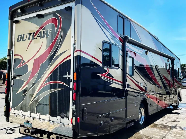 This 38 foot Outlaw (toy hauler) is perfect for your weekend dune trip. It comes fully equipped with 5500 Onan Generator, 2 Roof Ac units, Room to sleep up to 10 people with a small garage big enough to fit a few dirt bikes or even your Atv. With 2 Queen beds 2 twin beds and 2 single beds there is plenty of room for the family. The power awning and power Leveling system make camping an ease with just a push of a button. For those who enjoy the outdoors the back gate also turns into a patio for you to enjoy the fresh air and your morning coffee. This RV is one of a kind and a rare unit to Find!!
