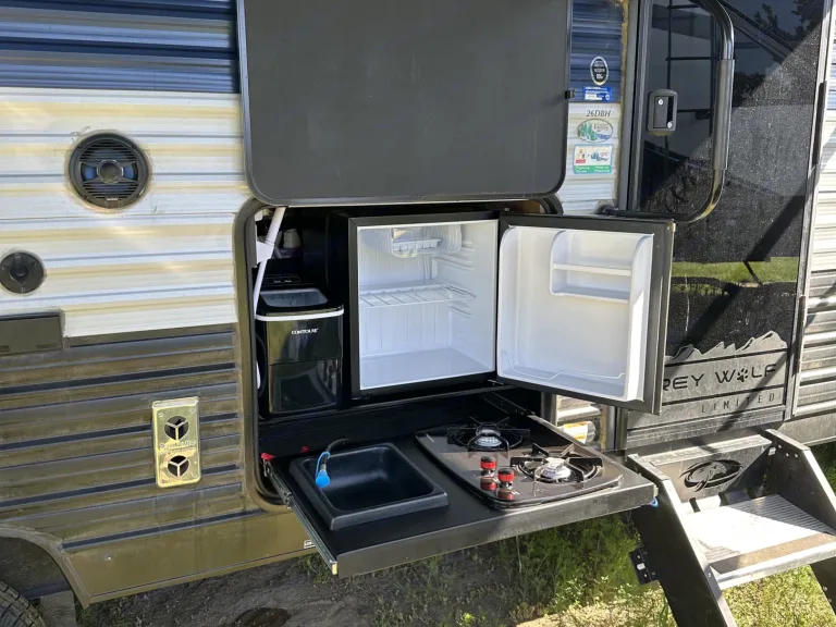 Full propane tanks & Full water tank. Full sewer, water, and power hookup equipment included.Please select the ADD-ON for waste tank clean out if: