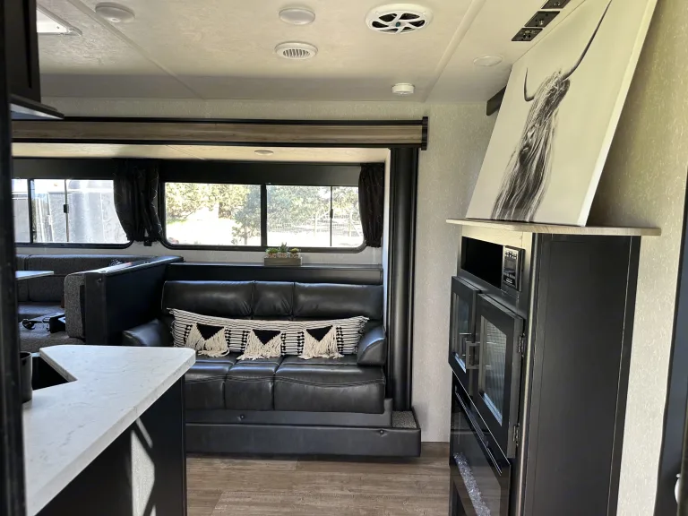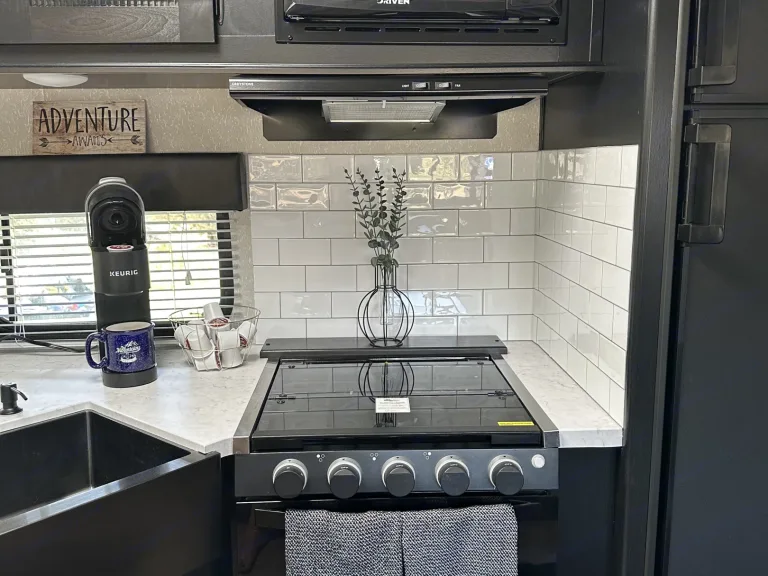 Bring your family, clothes, food, and adventure awaits!Ce qui est inclusFully equipped kitchen, Fresh Linens, extra blankets, plates, silverware, keurig, k-cups, coffee cups, wine glasses, tumblers, kitchen utensils, kitchen towels, spices, tupperware, games, bathroom towels(4), body wash, lotion, bug spray, bandaids, RV toilet paper, paper towels.