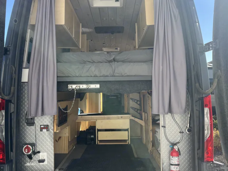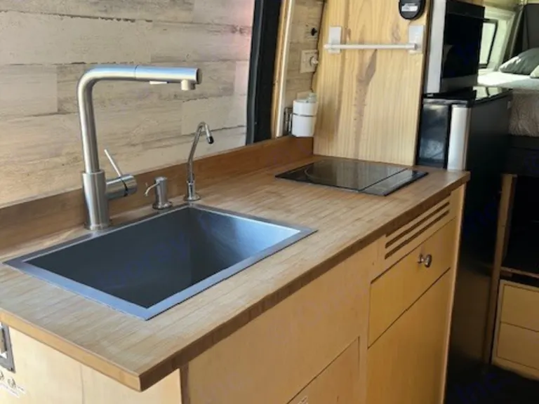 Meet K9: Your Summer Adventure Pup on Wheels!Say hello to K9, our ruggedly awesome 170" Sprinter van with a high roof and 4x4 drive — built to chase sunshine and conquer mountain roads with ease! Whether you're weaving through wildflower-filled meadows or climbing to those crisp alpine lakes in the Sierra Nevadas, K9 is your trusty trail companion.Inside, it's all comfort and chill vibes. With plush seating and sleeping space for 3, there's plenty of room to stretch out after a day of hiking, swimming, or stargazing. Perfect for friends, small families, or adventurous couples with gear to haul and trails to find.Think of it as your cozy cabin on wheels — only way cooler and mobile.Ready to roam? K9’s tail is wagging. Let’s roll into summer!Ce qui est inclusGenerator set included French Press, coffee cups, water boiler, all eating and cooking utensils, pillows, sheets/blankets, towels (including hand towels), toilet paper, trash bags, window covers, and chairs are included.RecommandationsDrive to a nearby mountain range of the Great Sierra Nevada Mountian. The journey takes you through lush valleys and up winding mountain roads, offering breathtaking views at every turn. Explore the numerous trails, ranging from easy walks to challenging climbs. The air is crisp, and the scent of pine fills your lungs as you trek through diverse terrains enjoying the beautiful sunsets on the rocks of Lake Tahoe. Autres points à signalerNo smoking in the van please. Pick up and drop off times vary from day to day so please contact host to schedule ahead.For Burning Man you must contact owner for rules and pricing.
