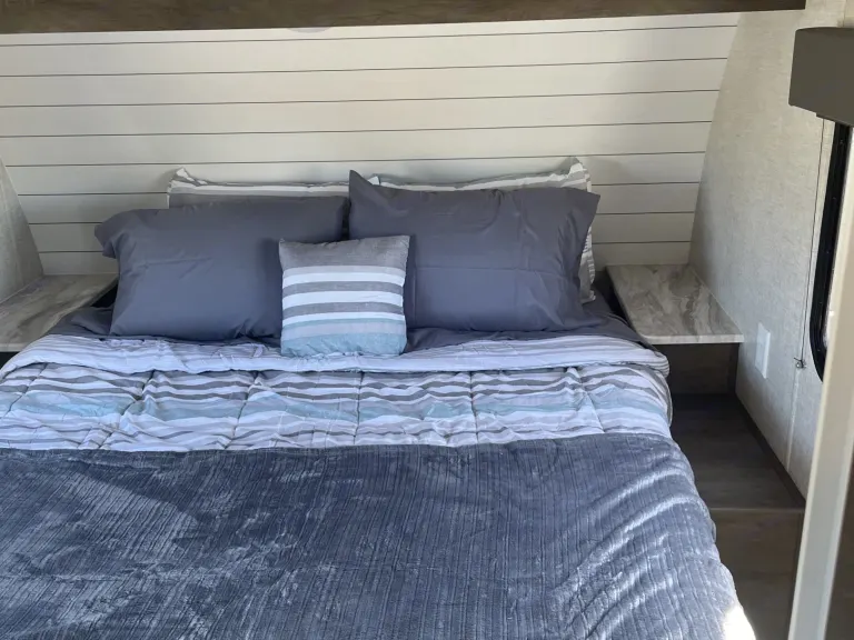 We provide pots/pans, coffee pot and mugs, cups, plates, bowls, silverware, cookware.Dump hose, water hose w/ pressure regulator, and blocks for leveling are also included.I do allow dogs, all I ask is that you be respectful especially of the furniture. Please don't be the one to ruin it for everybody.Weight distribution hitch with anti-sway included.One full tank of propane will be providedWe do provide towels and linens for an additional fee. Available upon request.Generator rental available upon request.If you have any special requests please ask, I will do what I can to accommodate.We absolutely love this trailer and hope you will too! Thanks for checking us out!Ce qui est inclusTowels and linens available for $20Unlimited generator usage for $15 per night$50 dump fee if you choose not to prior to returningAutres points à signalerTowels and linens available for $20Unlimited generator usage for $15 per night$50 dump fee if you choose not to prior to returning$50 fee for pets (Dogs Only)
