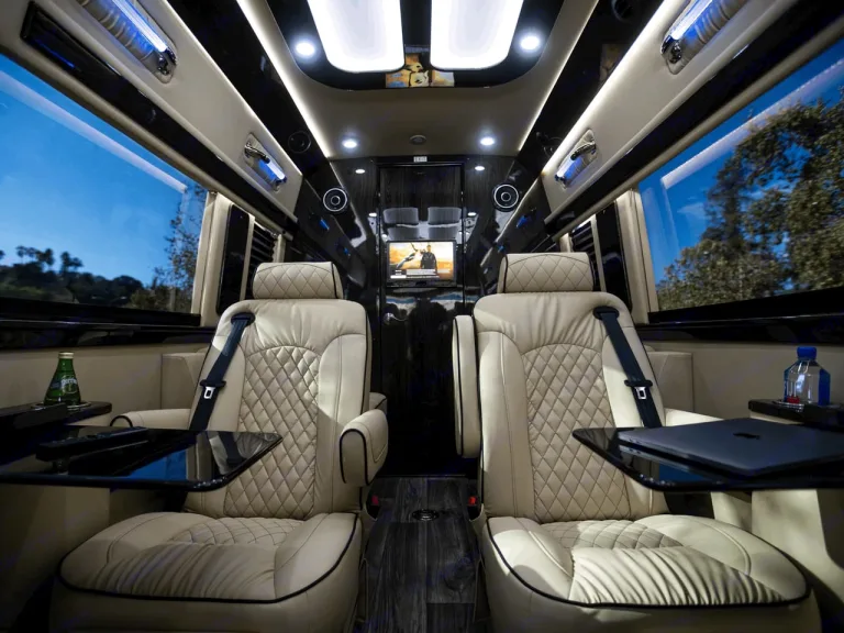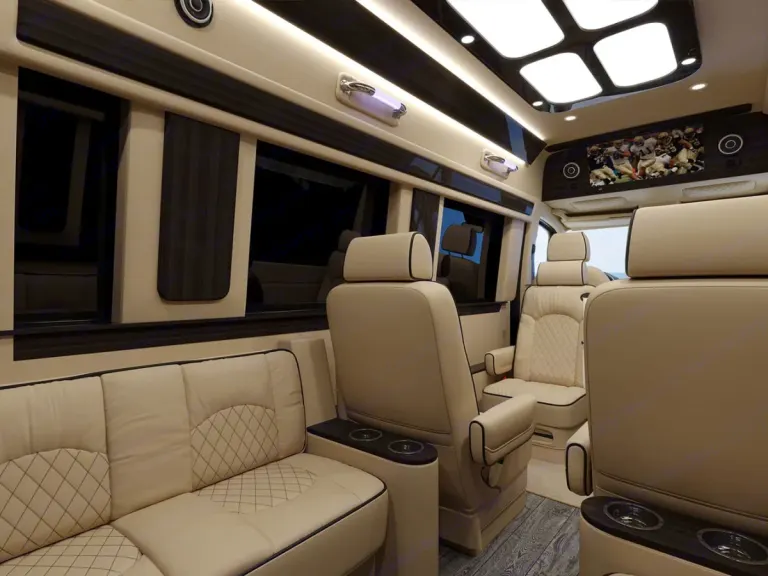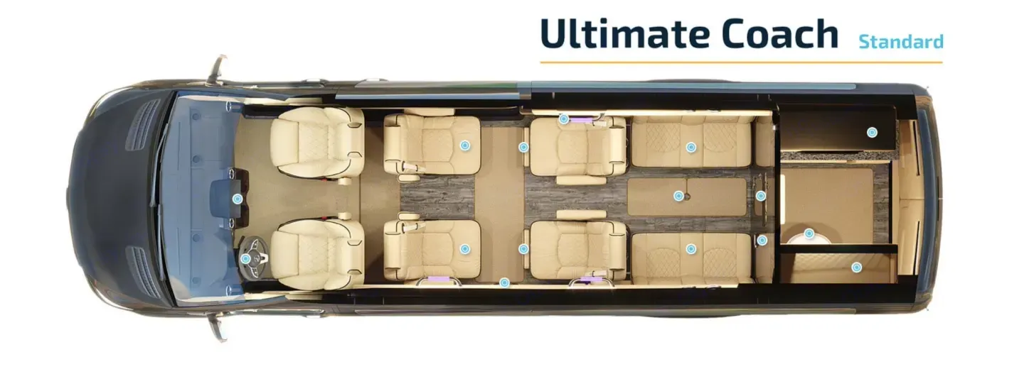 -Easy to driveOur most versatile Sprinter, the Ultimate Coach comes fully equipped with all the amenities and is designed with comfort, luxury, and style in mind. The beautifully handcrafted and custom interior will make you think you’re on a private jet. Ideal for enjoying family vacations. With a microwave, sink, and under-counter refrigerator there are always plenty of refreshments on hand. There is wireless Internet to surf the web or send emails. You can watch your favorite movies, live TV, sports, or play video games on the two HD TVs. For family outings, face the seats forward so everyone can enjoy each other’s company, or swivel them around and your Ultimate Coach instantly converts into club seating.Ce qui est inclusn/aRecommandationsn/aAutres points à signalern/a