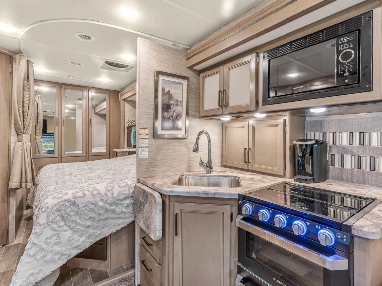Solar, generator, and a full kitchen ensure complete self-sufficiency anywhere.
