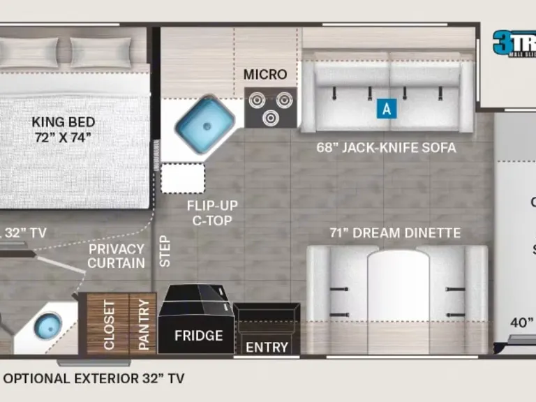 Enjoy ultimate comfort with a king bed and exterior TV for starry movie nights.