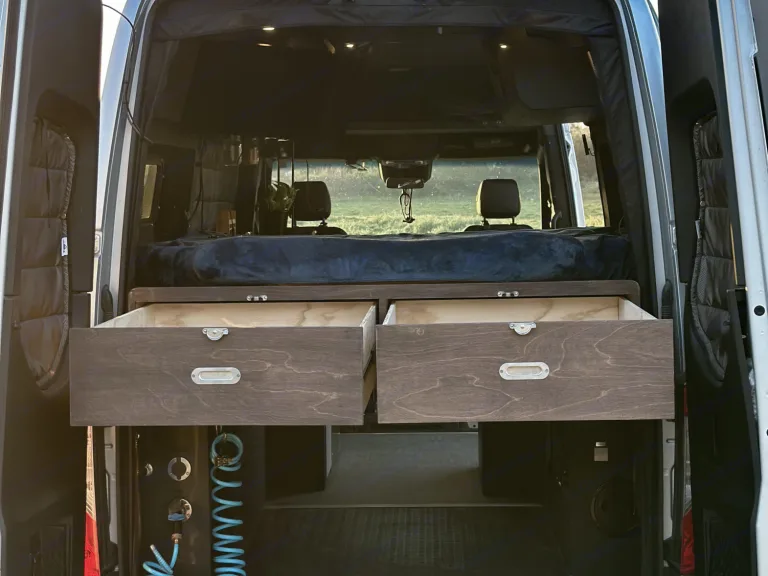 I have a pretty capable and cozy van. It has a fairly open concept, but maintains all the amenities you may need for a full adventure. It can stay completely off-grid for about two weeks with a 23 gallon water tank. It has a powerful battery system with 300 AH of lithium and a 3,000 watt pure sine wave inverter. The battery is supported by two solar panels on the roof, but primarily gets charged up by the alternator when the van is running. There is a Laveo dry flush toilet for when it’s needed - no hassle, just press a button and your stuff will be vacuum sealed away. The diesel heater is very strong as well, keeping the van well heated during colder nights. All-in-all, there’s a high chance it can take you on the trip you may be looking to do. Of course, reach out with any specific questions. Ce qui est inclus• Toiletries