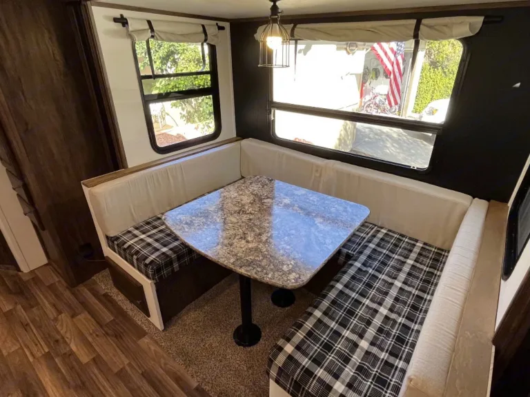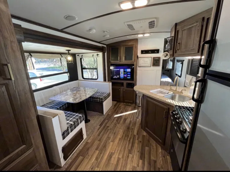 Cozy camper with all the comforts of home! Enjoy this travel trailer for camping at the beach, in the mountains, or wherever the wind shall take you.Upgraded interior for luxury life on the road. Living room, 4 smart TVs, inside shower, bunk beds, a queen bed and dinette conversion. RV sleeps 8 but the bunkbeds are more suited for younger ones.Rental includes basic kitchen needs, linens, soaps, and misc. Coffee and coffee maker also provided.AC & Heat to keep comfy in any weather.1 side slide out for extra interior space and awning outside for shade.Bike rack available upon request.