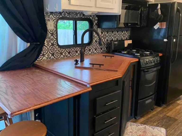 Beautifully renovated “park model” rv. Updated countertops and sinks (deep sink in kitchen great for meal prep).
