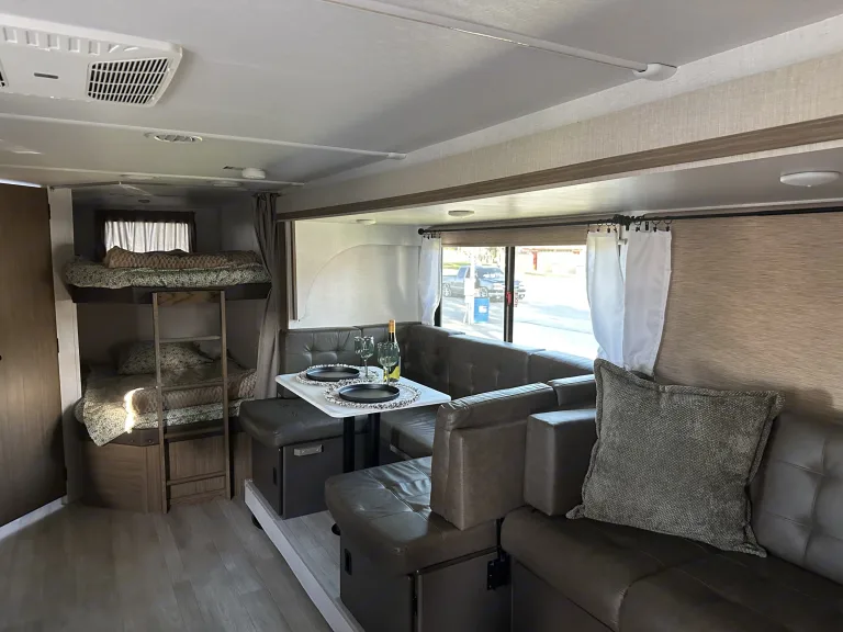 - Frais de préparation : 86,00 €. -Beds are fully made -Awning extended with LED lights on -Outdoor rug laid out, table and chairs set up -Coffee station ready -RV leveled and stable -Water, electric, and sewer connected -Climate set