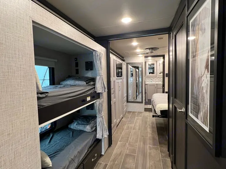 Tag Axle with bunks and two full bathrooms!!!Msrp $637,028. New 2023 Thor Motor Coach Tuscany 45BX Bunk Model for rent at the largest RV rental company in Houston! This beautiful RV is approximately 44 feet 10 inches in length with 3 slides, 2 full baths, Tilt-a-View king size bed, massive chaise with Hide-A-Bed sofa, large LED TV, drop-down overhead loft, diesel fired Aqua Hot, stackable washer/dryer, 450HP Cummins diesel engine, Freightliner tag axle chassis with IFS and an Allison 6-speed automatic transmission. This diesel motor home also features a host of impressive standard features such as a residential refrigerator, exterior entertainment center, keyless entry system, inverter with 6 house batteries, roof mounted awnings with matching aluminum boxes, Winegard Connect 4G/wifi system, high polished aluminum wheels, (2) stage Jacobs brake, dual fuel fills, full length stainless stone guard, fully automatic leveling system, 10KW generator, (3) roof A/C's with heat pumps and Much more. Addition options include the two power slide storage trays.Atlas is a Beast! This is our flagship rental and is amazing.