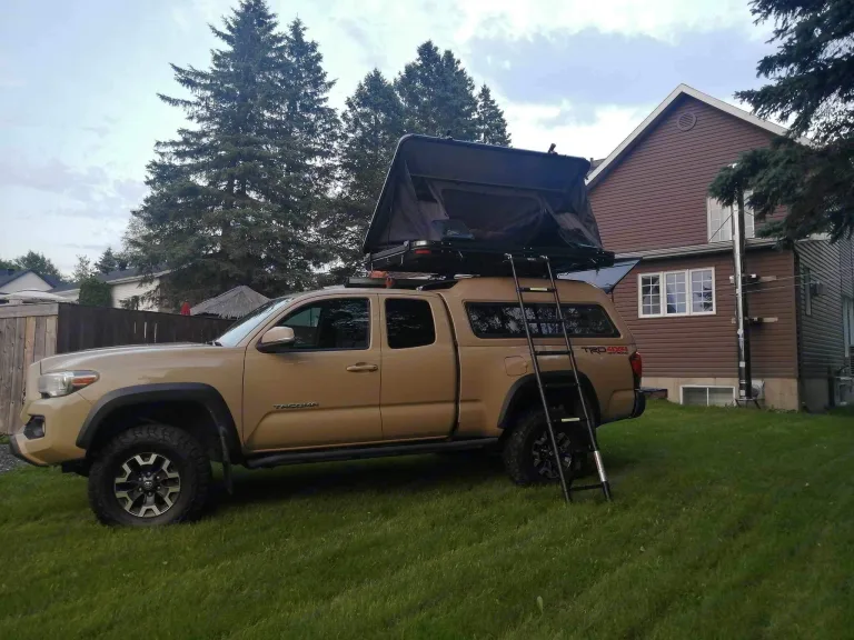 Meet Désert!She is the perfect truck to lift your adventure on the road of british colombia.and behond.unlimited millages, minimum cleaning fees and free airport pick up/drop off for a 10 days rental. She come with a free bike rack if you need it! With transparent pricing you will find that our rate is the best deal you can get !Désert is fully equip with : solar panels (plus inverter charging station), kitchen set up, roof tent, 4x4, Great tires, 3inch lift kit, chair and table, portable toilette, coffee maker, outdoor shower, full sleeping set up and more.We've been truck camping for 5 years, the combination of the roof tente and the tacoma is amazing. You can be on a Forest service road by a river and just decide to set camp.The legendary reliability of this Toyota Tacoma off-road , make it easy to navigate challenging terrain and reach your favorite camping. Our vehicle are regularly serviced and maintained to ensure they're always in topWe love to ear your travel plan, feel free reach out for a chat :)Ce qui est inclusRoof rack, small fridge, dinner table, camping chair, charger station, solar panel, kitchen set up, camping toilette, full sleeping set up, coffee maker, Camping chair and more :) RecommandationsCamping on the back road around whistler or the fraser valley is amazing ! Or visiting national park like Banff or Jasper. Fuel efficiency is great compared to an RV Autres points à signalerThis truck is ideal for off the grid camping