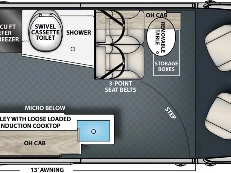 On-board generator with push button start, so no matter your campground amenities you will feel right at home.