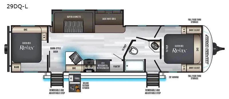 Experience amazing outdoor living with a generous 20' awning and full exterior kitchen.