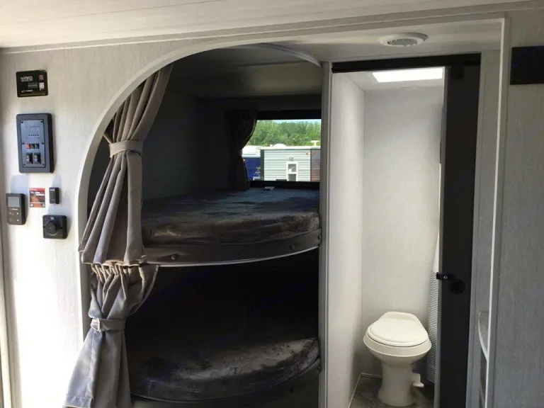 Embark on family adventures in this 2024 travel trailer, comfortably sleeping six.