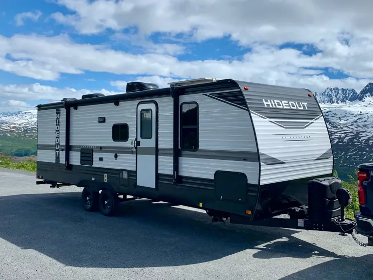 Welcome to The Valdez Hideout! This travel trailer is the perfect camper for an amazing Alaskan getaway. It is fully stocked with all of the supplies and gear you'll need to get started. It can accommodate up to 10 guests and includes a queen bed, 2 bunk beds, and a dinette and couch sleeper.A private bedroom is located at the front of the camper with a queen bed and plenty of storage space. The living area features a slide-out with a dinette and couch where you can enjoy the entertainment center and cozy fireplace. At the back of the camper is a bathroom with a shower and half-bath combination. There is also a fully stocked kitchen and pantry for your cooking and cleaning needs. The exterior includes an outdoor shower, awning, and a speaker system that can be enjoyed both indoors and outside.We do offer delivery upon request! Please note that this might not always be available, but we will do our best to accommodate your delivery needs.Upon request, you can also rent our generator for your trip which is perfect for boondocking in special areas where utility hookups are not available. The generator is needed for use of the microwave, a/c, fireplace, and small appliances.We love our wonderful town and have many great recommendations for RV parks to stay at or great spots for off-the-grid boondocking.If you have any questions, please contact us here on Outdoorsy and we'd love to chat!Ce qui est inclusIncluded in your trip are a variety of items to make sure you enjoy your stay.Inside the camper: