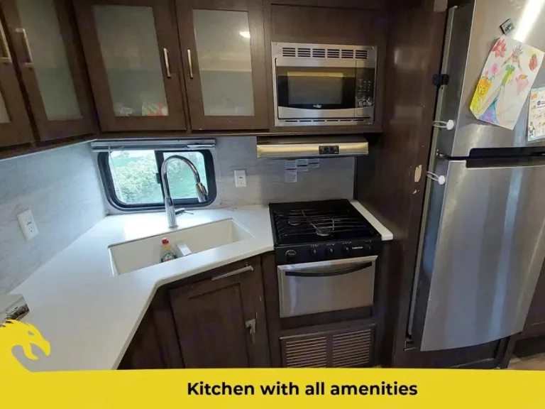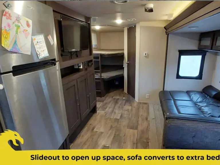 Perfect for families, this spacious RV comfortably sleeps eight and feels like home.