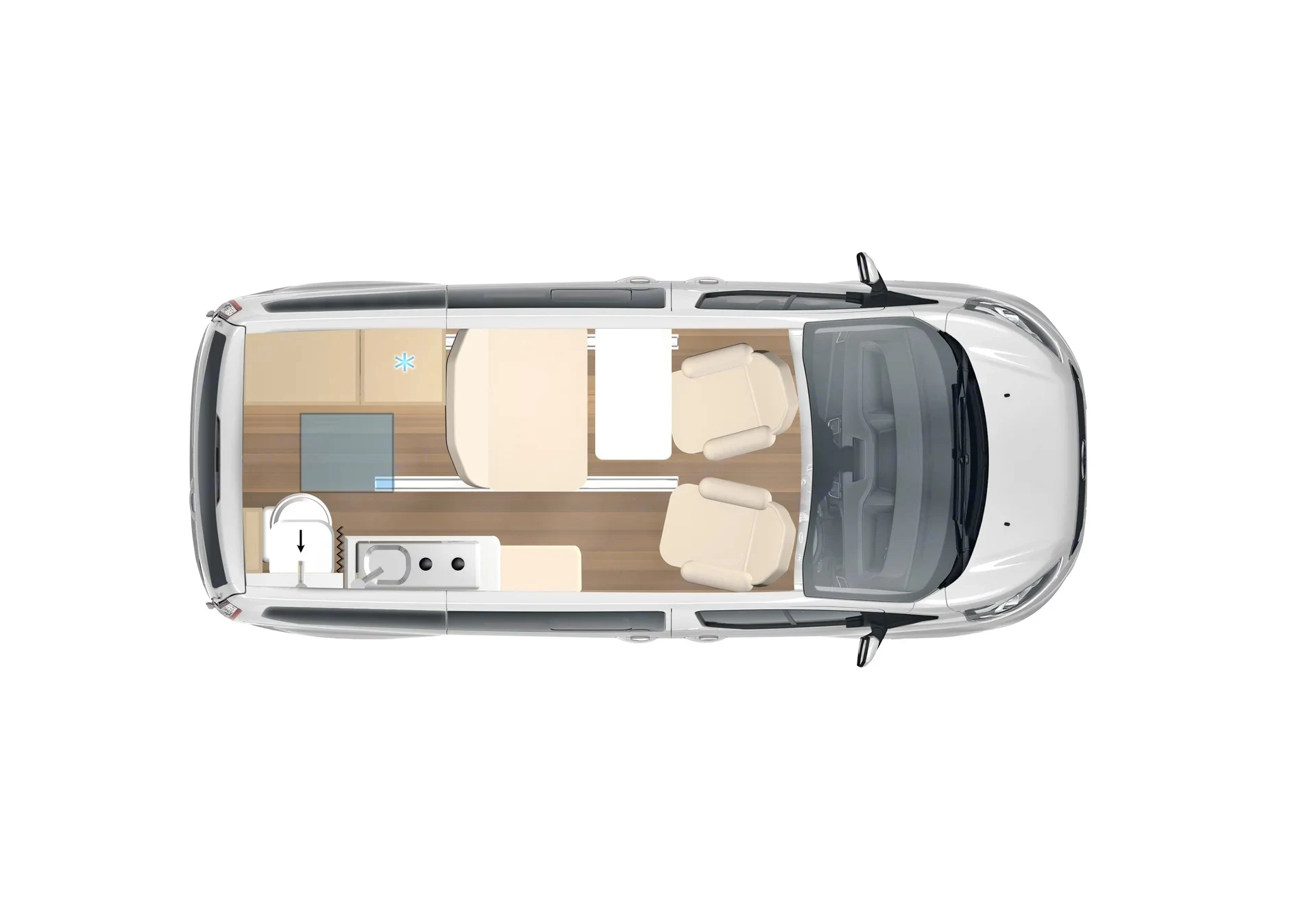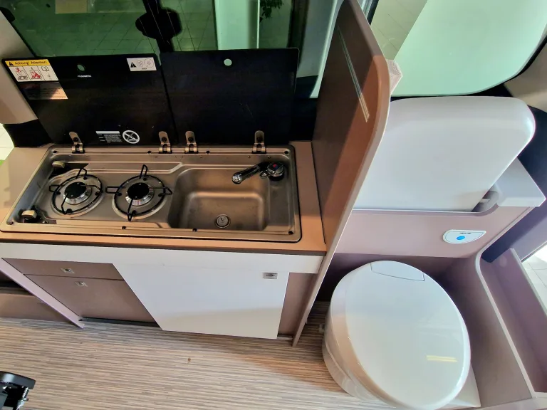 La cuisine fonctionnelle vous permet de préparer de bons petits plat en un tour de main. Ce modèle est également équipé d'une douche et de WC chimiques. Le toit relevable vous donne une hauteur confortable, et son lit double douillet vous donnera la sensation de dormir à la belle étoile ! À l'intérieur du Copa, vous vous sentirez tout de suite en vacances.Équipements inclus :