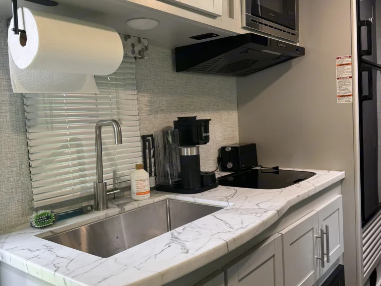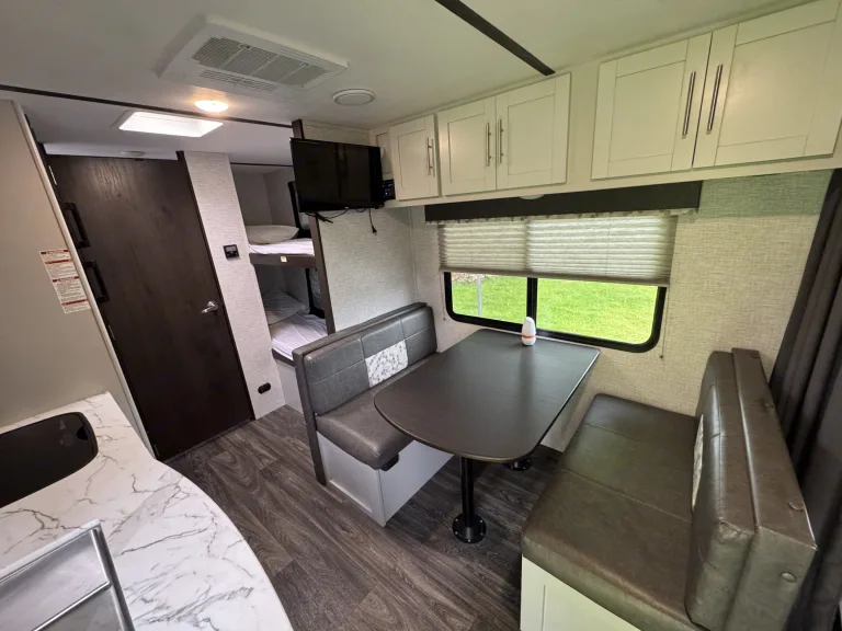 Lightweight and easy to tow—under 3,500 lbs dry weight. With cozy bunks and a convertible dinette, it comfortably sleeps up to 6. Perfect for families or couples ready to explore.Delivery and pick up within a 50 mile radius will be considered upon request for an additional mileage base fee.Ce qui est inclus• Fully stocked kitchen with all the needed utensils