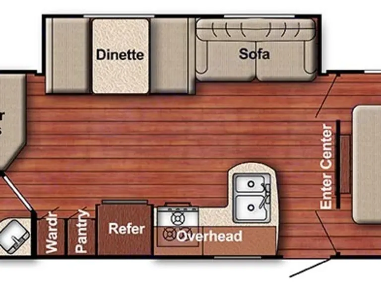 This 2018 bunkhouse is 8 feet wide for extra room. Great camper for family and friends, this single slide unit has lots of sleeping capacity with fold down dinette, front rv queen bed, double entry and rear bunks. Also a nice kitchen with microwave and more.