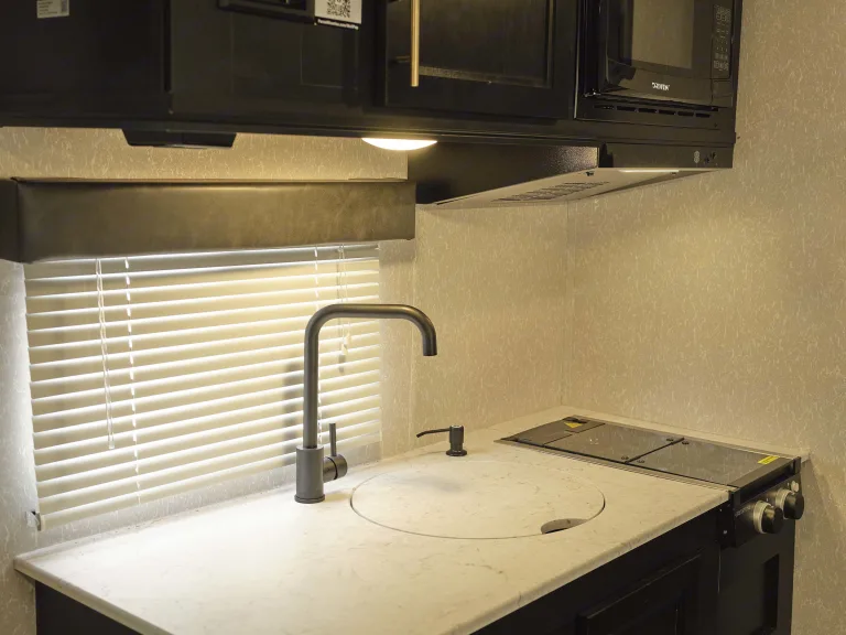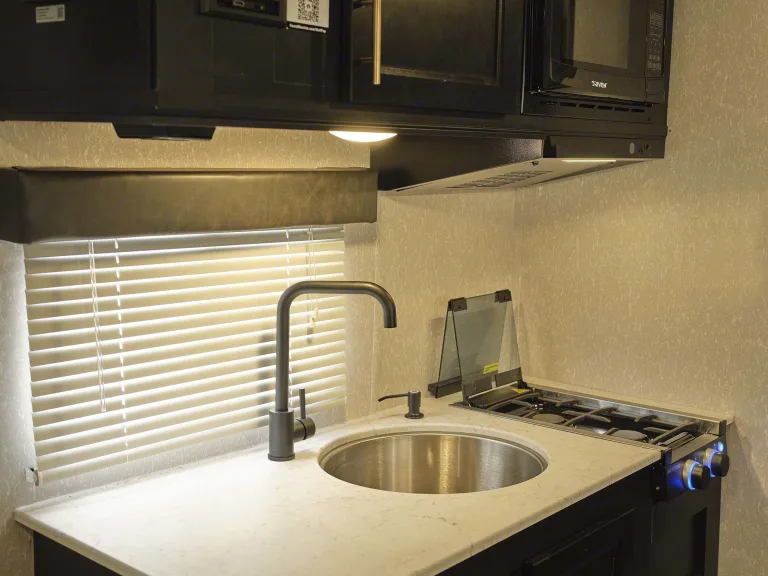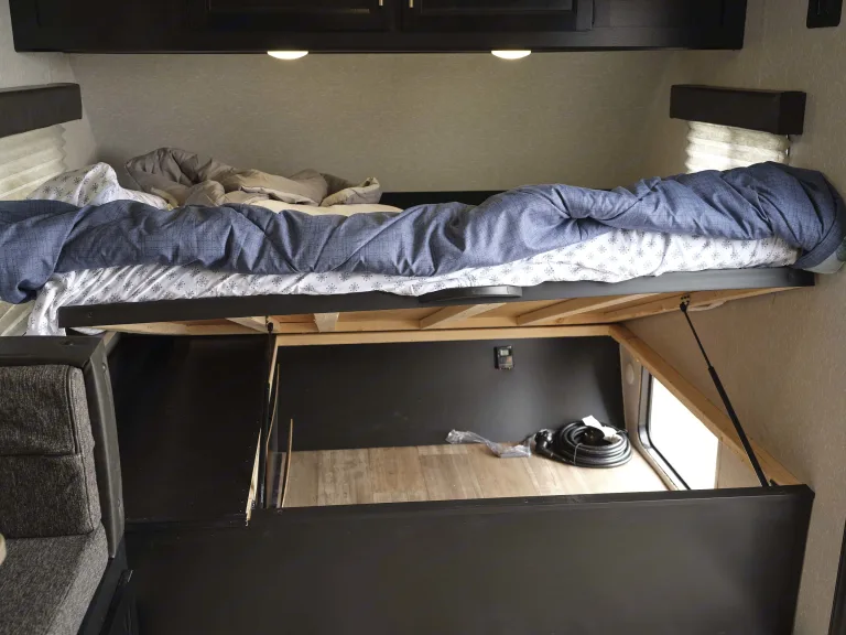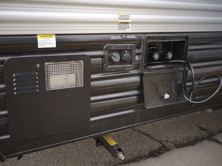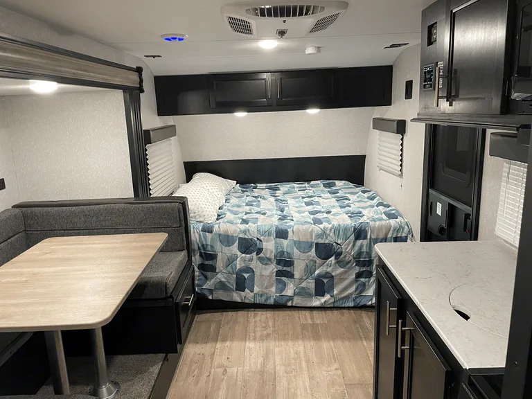 Fit all the bigger items you might need in the large storage areas under the bunks, under the front bed, and dinette.Other honorable mentions include the 13,500 BTU air conditioner, microwave, stove, toilet, shower, outside shower, bluetooth speakers, and outdoor speakers! Also has four stabilizer jacks and a quick connect for a propane grill.Equipped with Monster Seal for your convenience and ease of use! This is a sealant placed inside the tires that seals up any damage made from running over nails or other sharp objects you might accidentally come across.Don't let the opportunity pass you by to make some fun memories in this amazing camper! Please feel free to call or text if you have any questions at all!