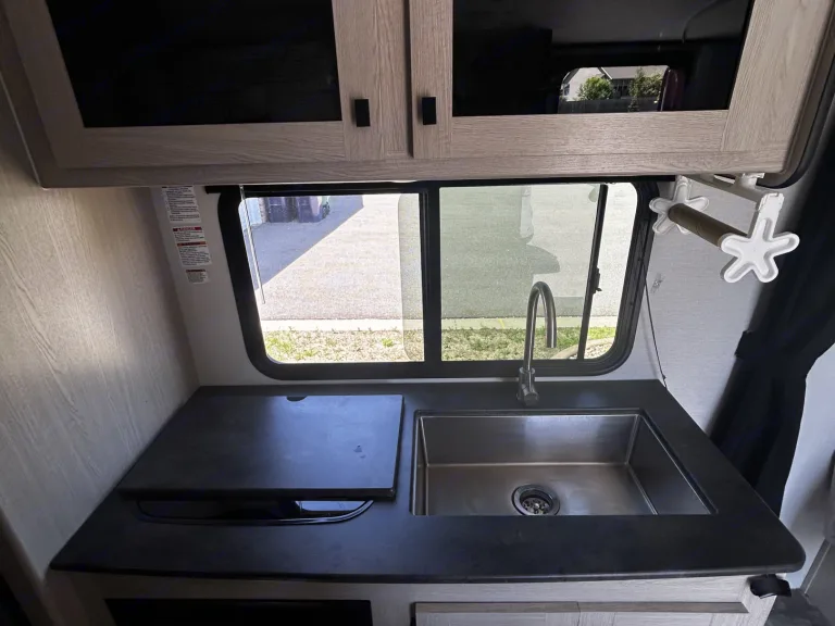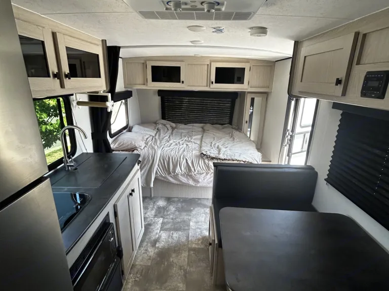 Beautiful, lightweight, modern, spacious, and comfortable camper perfect for the whole family to go out and enjoy the nice summer weekend! Equipped with a thick and comfortable queen bed, two full size bunks, and a pull out dinette bed.Large bathroom with shower and sink. (Toilet paper included)