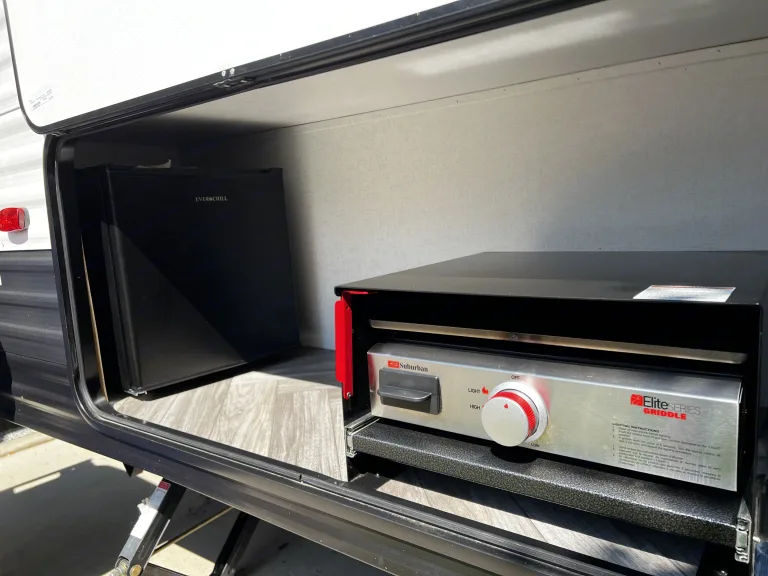 Cook with the outdoor griddle, keep drinks cold in the mini-fridge, relax under an awning.